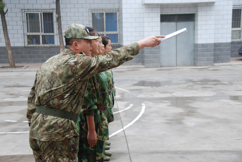 教官示范齊步走動作要領 今天二排的訓練任務是齊步走的練習,教官做了齊步走的動作示范后,各班依次帶開,由各班班長組織單班訓練。齊步走時必須要做到擺臂的頻率一致,才能使隊伍看起來整齊劃一,教官命令各班先做手臂分解動作的練習,“一、二、一,一、二、一...”,女兵們清脆宏亮的口號聲響徹操場,絲毫不落后于其他男排,成為軍訓場上一道亮麗的風景線。