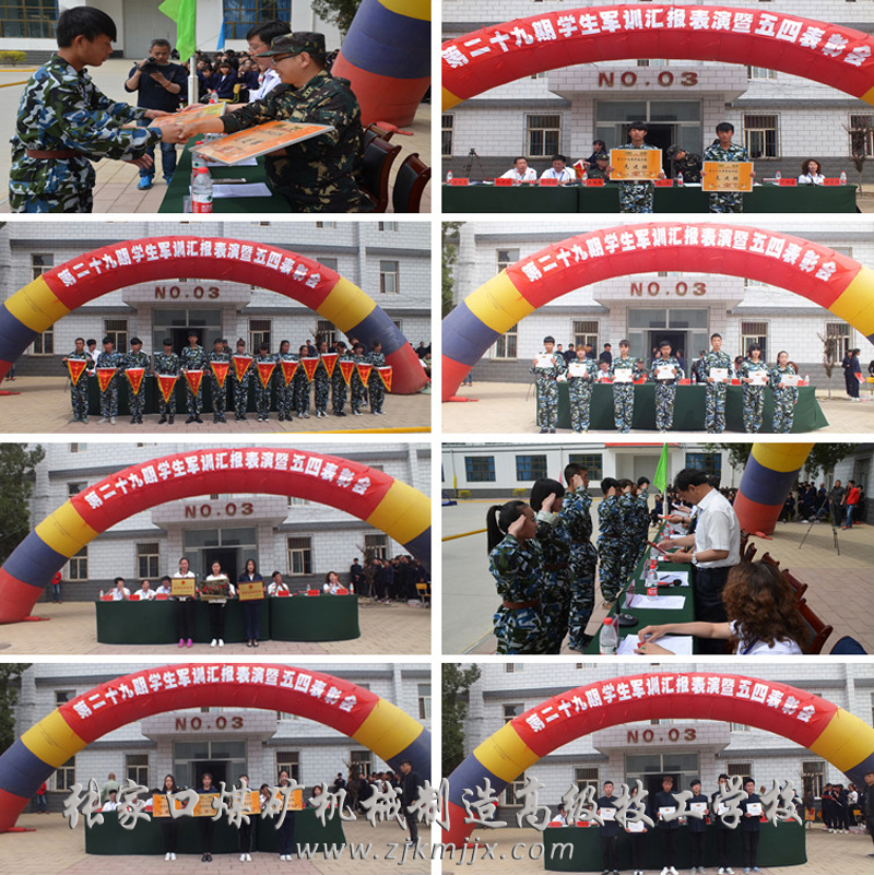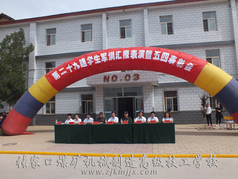 2017年5月8日,張家口煤礦機械制造高級技工學校在校園西操場隆重舉行了第二十九期學生軍訓匯報表演暨五四表彰會。學校領導、北京東方卓培教育科技有限公司總經理邢二闖同志、北京東方卓培教育科技有限公司軍事將帥特訓營隊長、本次軍訓營營長李世舉同志出席大會。張樹偉副校長主持會議。