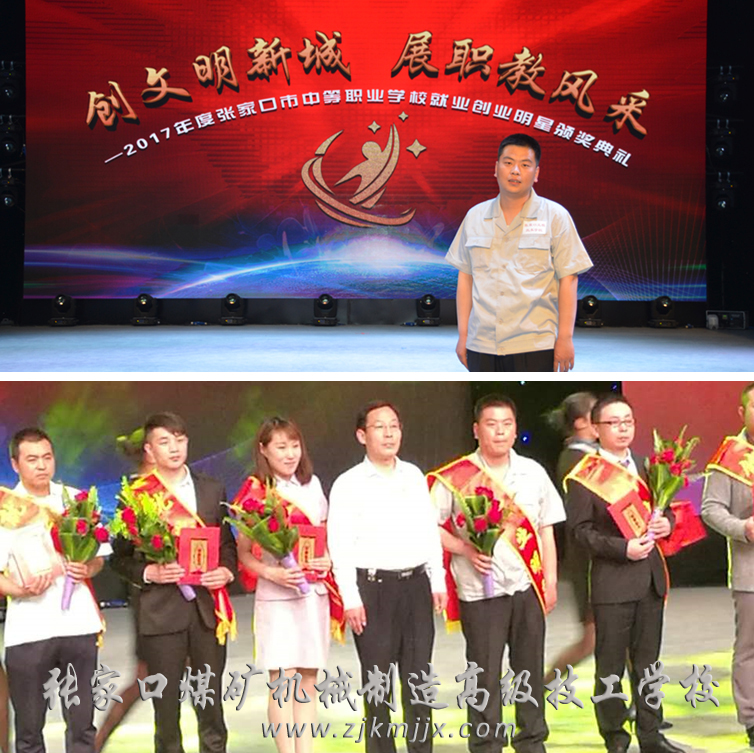 學(xué)校優(yōu)秀畢業(yè)生在“2017年度張家口市中職學(xué)校創(chuàng)業(yè)就業(yè)明星”頒獎(jiǎng)典禮上接受嘉獎(jiǎng)