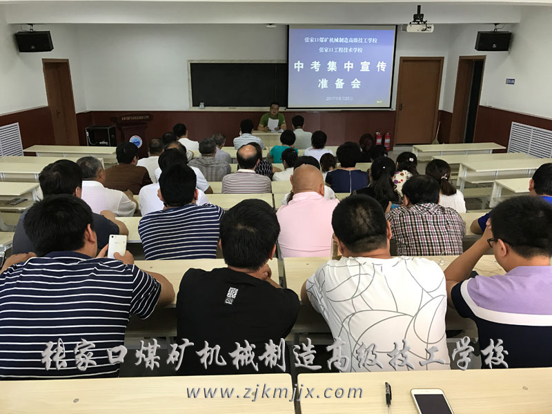 6月20日下午,張家口煤礦機械制造高級技工學校在校綜合樓一樓階梯教室召開中考集中宣傳準備會。