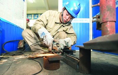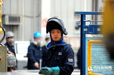 駱艷玉在車間巡視織機 朱強,27歲,中建鋼構有限公司華中大區武漢廠五車間焊接班班長,曾獲2014年“嘉克杯”國際焊接技能大賽第14名,2016年獲全國五一勞動獎章。他說:現在我投入精力最多的就是焊接理論知識學習,當了10年焊工,我覺得焊接這門學問還大著呢。