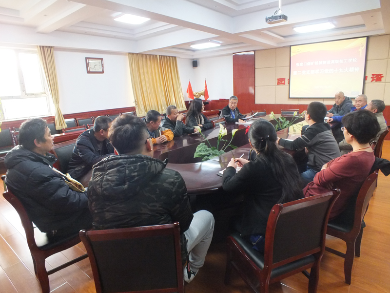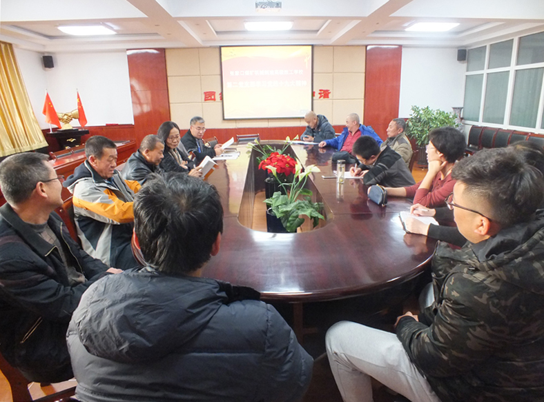 張家口煤礦機械制造高級技工學校在校黨委的安排部署下,全校掀起學習、宣傳和貫徹黨的十九大精神的新熱潮。2017年12月19日,學校第二黨支部第二黨小組召開黨員會議,集中學習了十九大精神的部分內容。