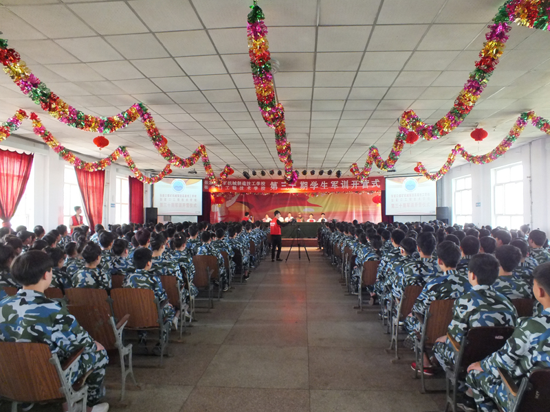 2018年4月28日上午,張家口煤礦機械制造高級技工學校在綜合樓五樓會議室隆重舉行第三十期春季新生軍訓開營式。會議由黨委委員、副校長張樹偉同志主持,2018級春季400多名新生參加了開營式。