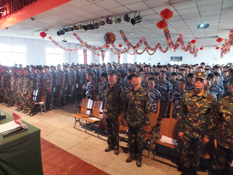 開營儀式在莊嚴(yán)的《中國人民解放軍軍歌》聲中拉開帷幕。校長助理鄒建祥同志宣布軍訓(xùn)營編制,軍訓(xùn)營教導(dǎo)員廉鳳霞同志宣布本期軍訓(xùn)計(jì)劃。全體教官和參訓(xùn)學(xué)生集體宣誓,對(duì)完成好本次軍政訓(xùn)練表示了信心和決心。