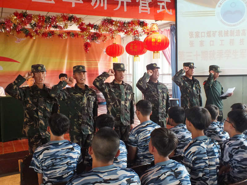 2018年8月13日上午,張家口煤礦機(jī)械制造高級(jí)技工學(xué)校在綜合樓五樓會(huì)議室隆重舉行第三十期秋季新生軍訓(xùn)開營式。北京昌平勵(lì)志國防教育培訓(xùn)學(xué)校李世舉副校長,學(xué)校黨委副書記、校長高峰同志,黨委委員、副校長張樹偉和郎效雷同志,校長助理鄒建祥同志,學(xué)生工作部廉鳳霞部長出席開營儀式,會(huì)議由行政管理部馬保衛(wèi)部長主持。教官、班主任和400多名新生參加了開營式。