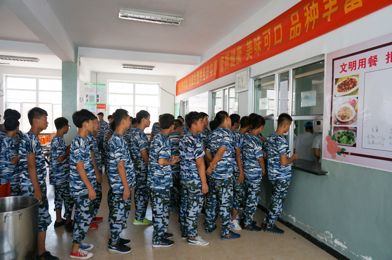 在餐廳,同學(xué)們排著整齊的隊(duì)伍打飯,站如松,坐如鐘,一切行動(dòng)聽指揮。在嚴(yán)格的軍事訓(xùn)練中,同學(xué)們養(yǎng)成了嚴(yán)明的組織紀(jì)律和良好的生活習(xí)慣。