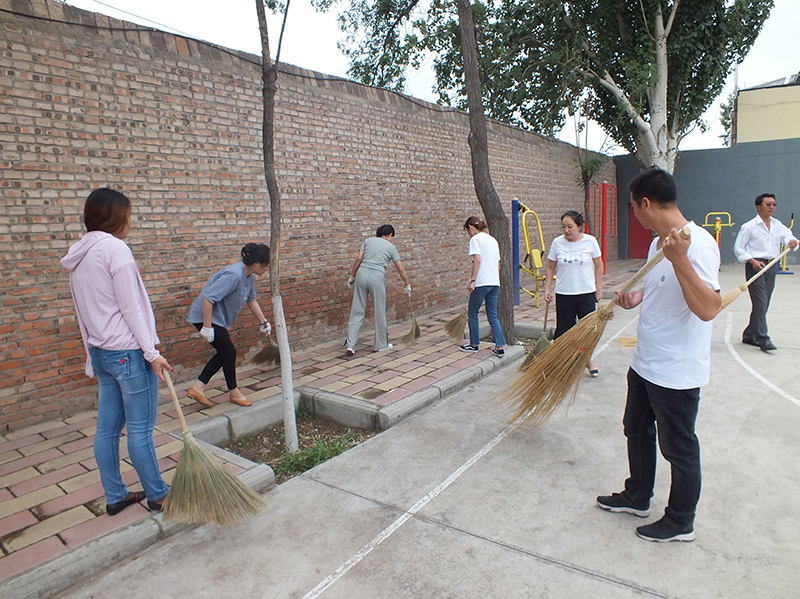 上午九點,全體黨員拿著掃帚、鐵鍬和簸箕等勞動工具,開始清掃校園,保安師傅們也主動加入到了勞動中。經過一個假期,校園門口通道、小操場和食堂前落葉、塵土和垃圾等較多,大家也把這些區域作為清掃重點區域。在勞動過程中,盡管秋日的天氣比較涼爽,但許多人還是累得滿頭大汗。經過大家的辛勤勞動,校園又恢復到干凈、整潔的面貌。 校黨委為全體黨員上得“開學第一課”,得到了廣大師生的點贊。