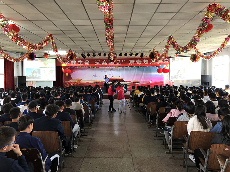為加強青少年的禁毒教育,增強廣大師生的識毒、拒毒、防毒意識,2019年5月13日,學校邀請張家口市強制隔離戒毒所梅陽警官給我校2019春級學生作了關于“珍愛生命 遠離毒品”禁毒知識講座。
