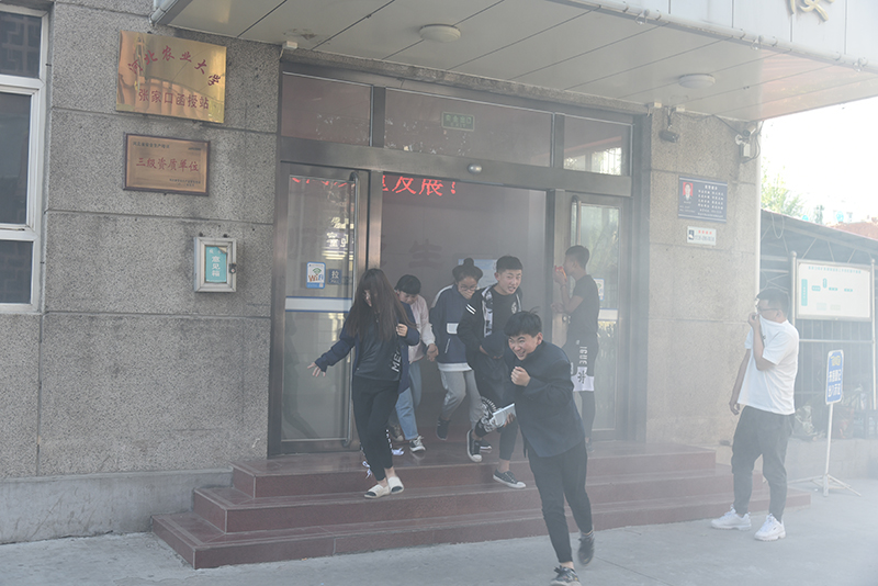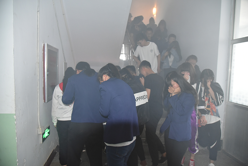 為進一步掌握在防災(zāi)中迅速逃生、自救、互救的基本技能,提高師生抵御火災(zāi)和應(yīng)對緊急突發(fā)事件的能力,在安全教育過后緊接著開展了消防演練活動。師生們從會議室撤離,用毛巾或衣物捂住口鼻沿走廊彎腰小跑,按照消防通道指示牌方向,自綜合樓安全通道有序迅速地跑到學(xué)校西院籃球場。