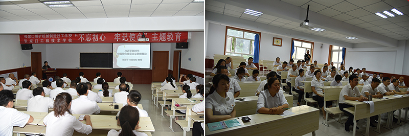 2019年6月27日下午,張家口煤機技校黨委按照學校“不忘初心、牢記使命”主題教育方案的安排部署,邀請張家口市委黨校張麗平教授來校上“不忘初心、牢記使命”主題教育專題黨課。學校全體黨員、中層管理人員、2018年先進個人、2017-2018年優(yōu)秀班主任參加了聽課活動。
