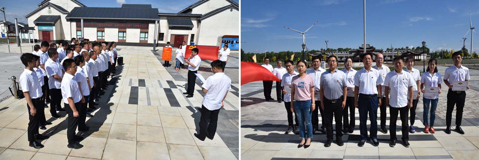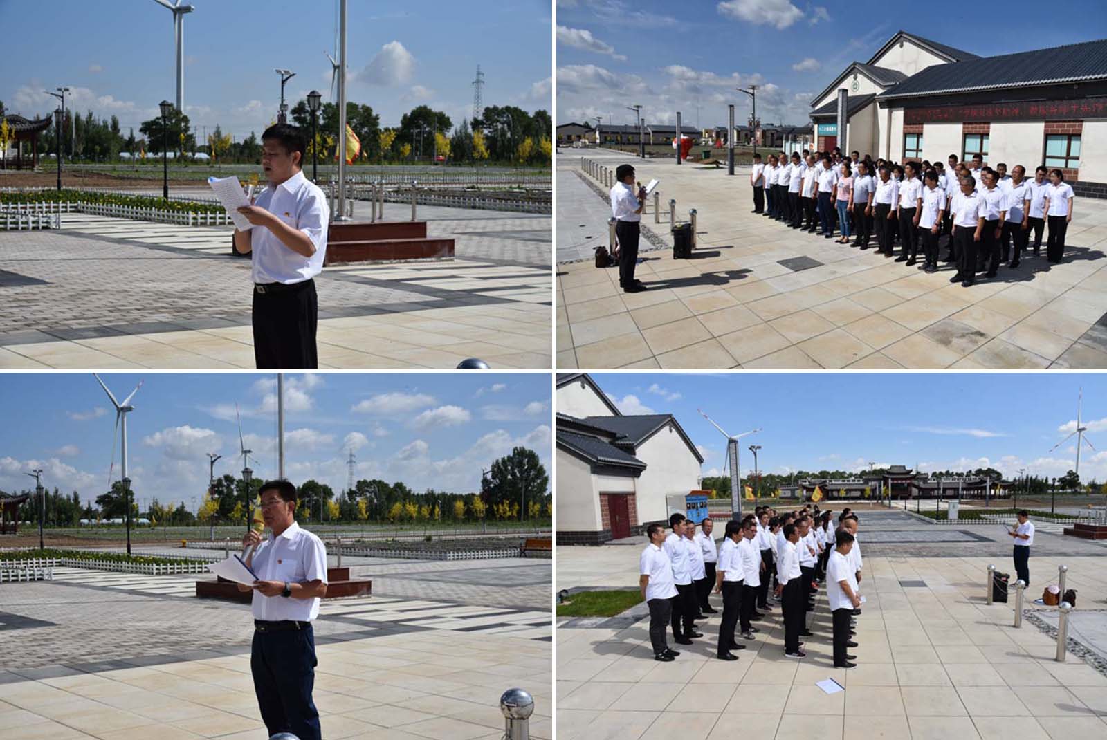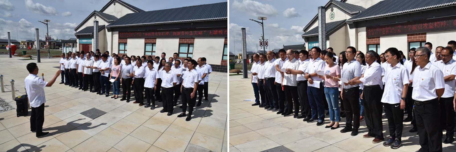 張北縣德勝村,習總書記牽掛在心的貧困村,經過多產業精準脫貧,過上了幸福的生活;這里也是全國上下齊心協力,精準脫貧使無數貧困鄉村走上富裕之路的縮影。校黨委組織主題教育活動,親臨現場學習脫貧攻堅成功經驗,感受翻天覆地的變化,扎實弘揚攻堅脫貧精神。 德勝村村委會廣場,在雄壯的國歌聲中,鮮艷的五星紅旗冉冉升起,全體人員行注目禮。升旗儀式后,2020年新發展預備黨員舒振同全體黨員面對黨旗,舉起右拳,向黨宣誓。錚錚誓言,牢記在心;莊嚴承諾,貴在踐行。接著,學校黨委委員、副校長郎效雷宣讀《關于表彰2019年度優秀黨小組和優秀共產黨員的決定》,來賓和校領導為7位優秀黨員頒發了榮譽證書。郎副校長為全體黨員上了《深入理解和貫徹堅持以人民為中心》黨課,闡述了以人民為中心的重大意義和深刻內涵,要求全體黨員以師生為中心,做好服務師生工作。黨委副書記、校長高峰作了《發揚脫貧攻堅精神,邁實穩定發展步伐》講話,總結脫貧攻堅包含的“先天下之憂而憂、后天下之樂而樂”的奉獻精神、“凝心聚力攻堅脫貧”的團結精神、“不到樓蘭終不還”的決戰精神,并結合學校發展實際,希望全體人員在下半年的教育教學工作中,弘揚脫貧攻堅精神,穩扎穩打,開拓創新,為全年工作畫上圓滿句號。最后,全體人員合唱《我和我的祖國》,嘹亮的歌聲唱響粉墻黛瓦的德勝村村委會,表達對黨和祖國的熱愛。